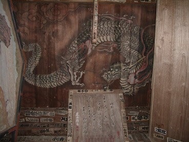 天井に描かれた龍は眼光鋭くみごとです。こんな所でこんなすごい龍が見られるなんて驚きです。